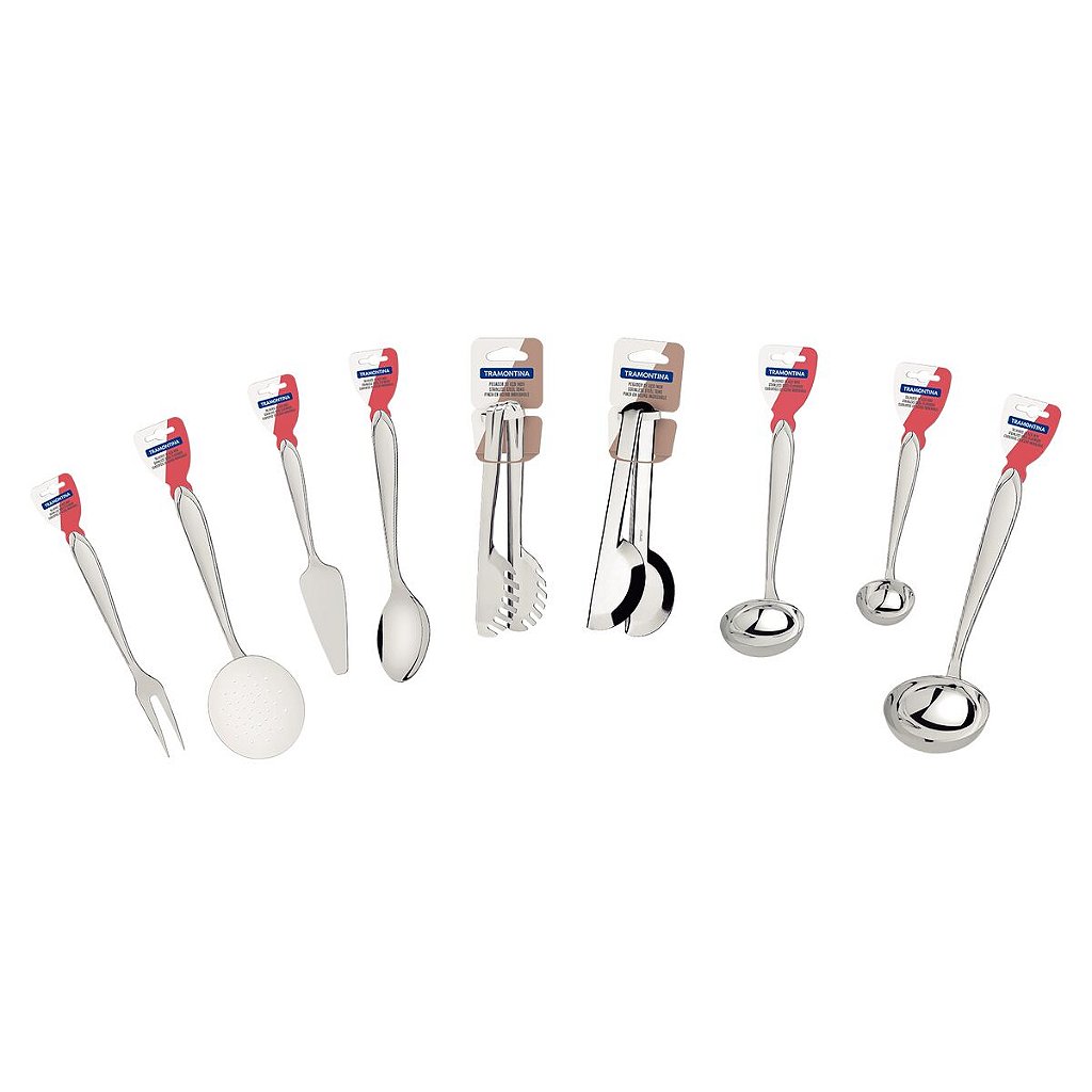 12 63906101 Colher para arroz + 12 63906191 Concha de feijão + 12 63906211 Concha para molho + 12 63906091 Concha terrina + 12 63906221 Espumadeira + 12 63906471 Garfo trinchante + 12 63800601 Pegador para massa + 12 63800621 Pegador universal + 12 63906151 Pá para bolo