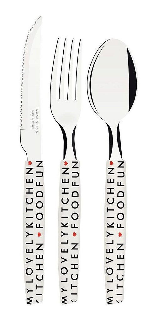Talher Tramontina My Lovely Kitchen com Lâmina em Aço Inox e Cabo de Polipropileno Branco