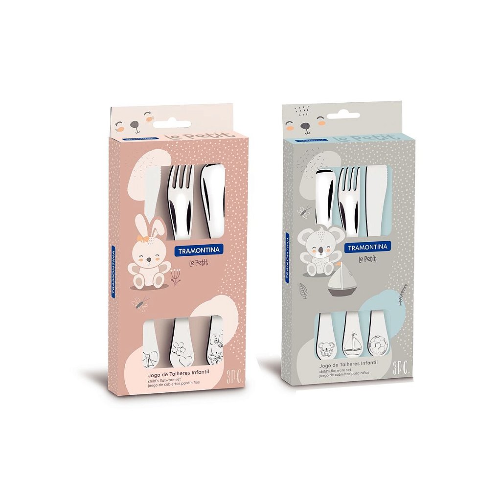 Display com 40 jogos de talheres de criança em aço inox de 3 peças Le Petit. EAN13: 7891116079287 DUN14: 17891116079284 NCM: 8215.20.00 Peso Líquido: 0,0700 kg. Peso Bruto: 0,1030 kg. Metragem: 0,000001 m3. Dimensões Produto (Compr. X Larg. X Alt.): 1x 1x 1 mm.