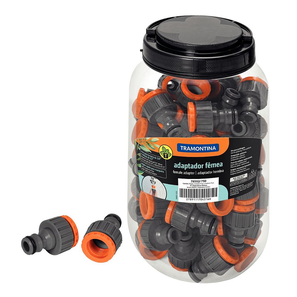 Adaptador fêmea, rosca de 3/4" e redução de 1/2", em pote de 75 un