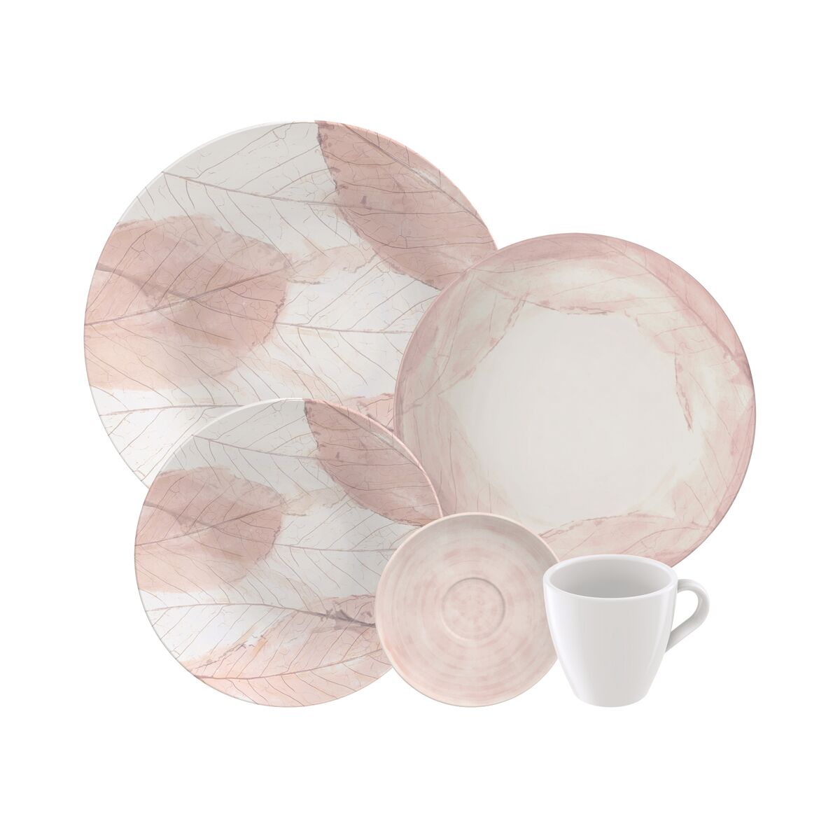 4 96580010 Conjunto Xícara e Pires de Chá Tramontina Rosé em Porcelana