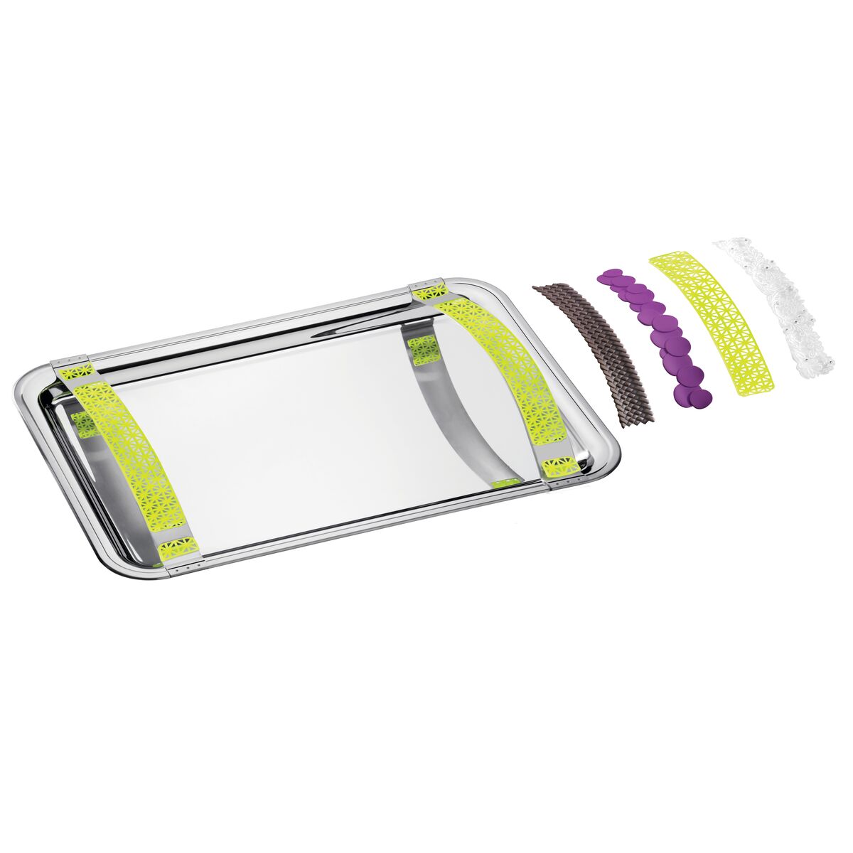 Os modelos da Bandeja Tramontina Retangular em Aço Inox com Alças Removíveis 49x33 cm Be Trendy da Tramontina trazem criatividade e descontração para quem gosta de servir com sofisticação. Além do inconfundível brilho do inox, a linha conta com alças removíveis em quatro estilos que combinam com as mais variadas ocasiões. Você vai se apaixonar pelas alças rendadas a laser do Estilo Elegante, o verde-limão vibrante do Estilo Doce Vita, a sobriedade do couro trançado do Estilo Rústico e a irreverência das bolinhas roxas do Estilo Cool.