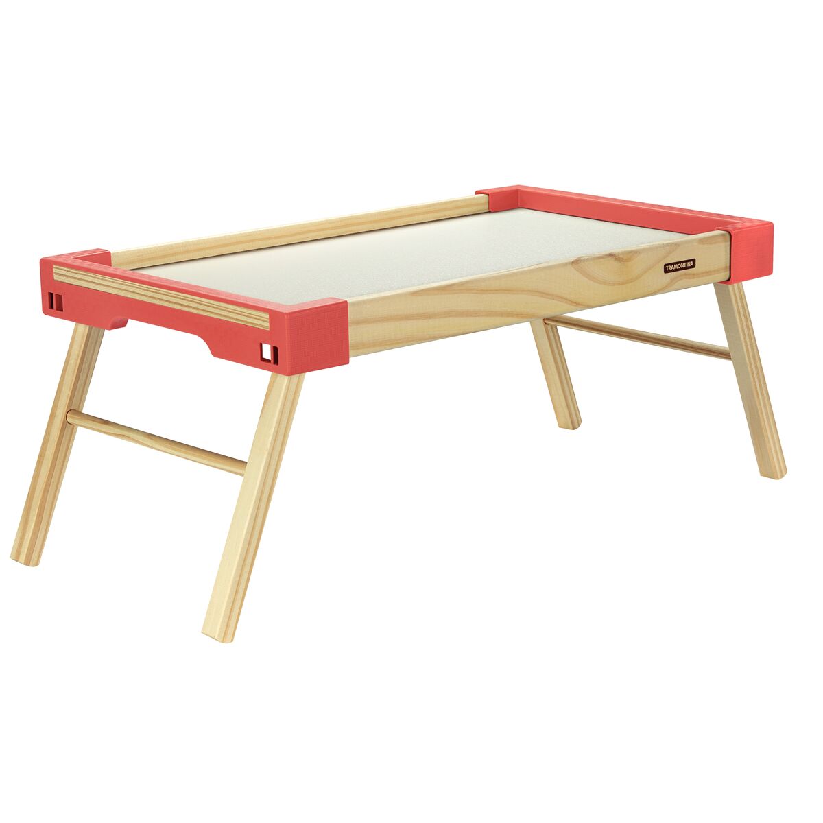 Para servir aquele café da manhã especial para quem você ama, conte com a bandeja Tramontina Happy Day em madeira maciça com laterais em polipropileno coral e pés dobráveis. Com design moderno e diferenciado, ela é um grande auxiliar na hora de comer ou mesmo de trabalhar na cama, pois ela tem capacidade de 04 quilos e é dobrável. É produzida em madeira de pinus com acabamento natural e laterais em polipropileno texturizado na cor coral, o que lhe concede um toque muito especial e cheio de charme!