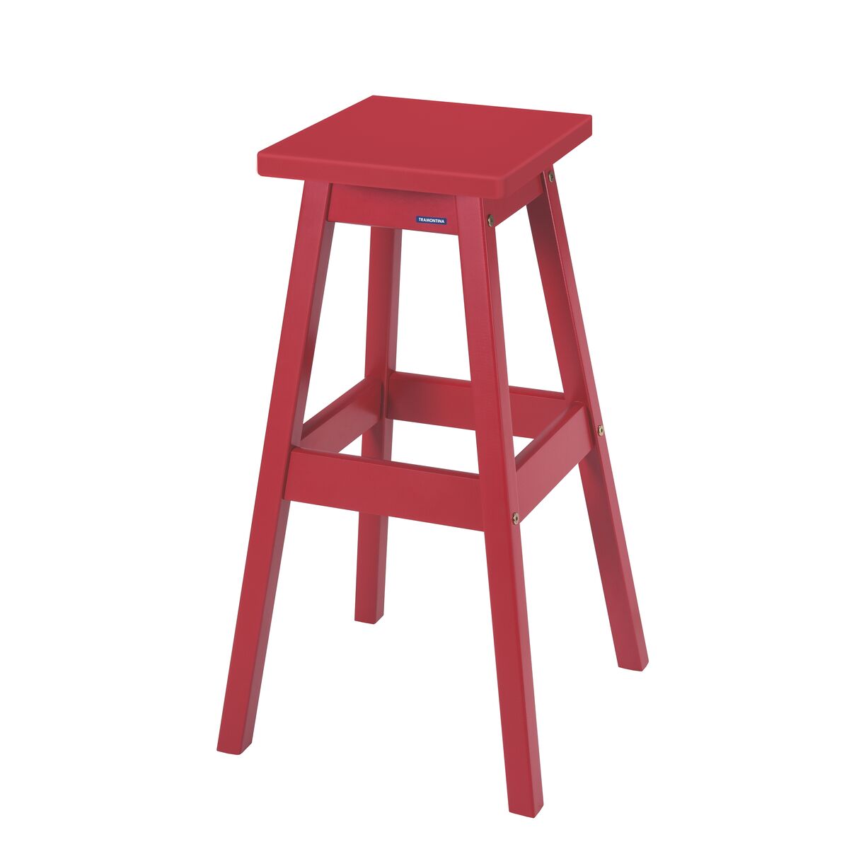 BANQUETA QUADRA DE PINUS MACIÇO, COR VERMELHA LAQUEADA.