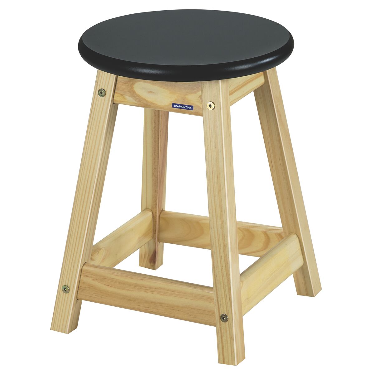 Banqueta Baixa Tramontina em Madeira Pinus Envernizada com Tampo Preto