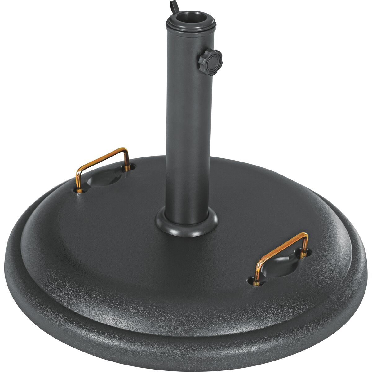 1. A base é utilizada para fixar o ombrelone, sendo um acessório indispensável. 2. Produzida em concreto que garante maior resistência e segurança para o seu ombrelone em dias de vento. 3. Possui 50cm de diâmetro, 37cm de altura e 25Kgs.