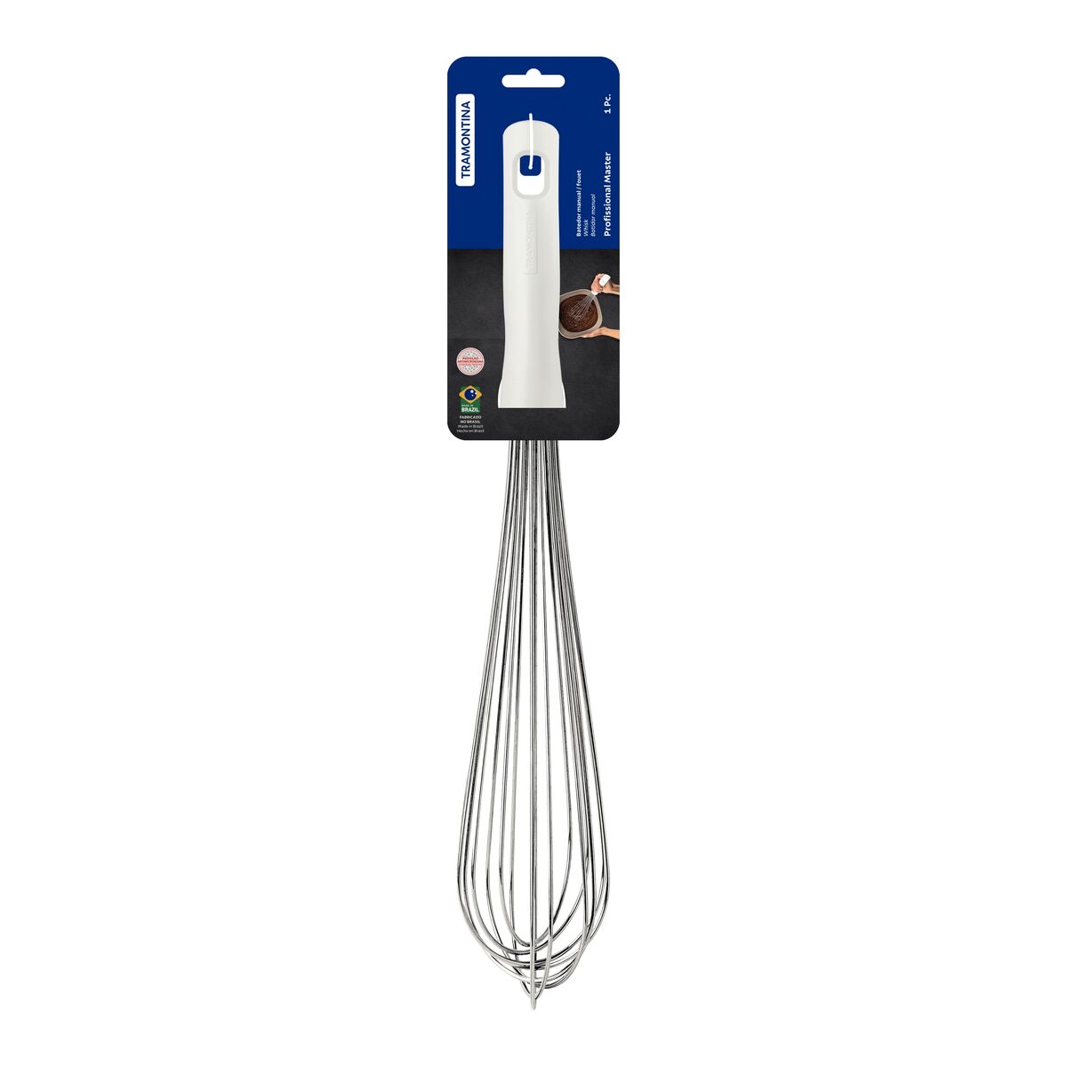 Conte com o auxílio do batedor manual Tramontina Profissional em aço inox com cabo em polipropileno branco 40 centímetros e leve maior praticidade para o preparo das suas receitas. Ideal para acompanhar o dia a dia de confeiteiros e cozinheiros, ele é desenvolvido em aço inox especial com cabo em polipropileno texturizado, que também anatômico, evita a retenção de resíduos e conta com proteção antimicrobiana, que evita a proliferação de fungos e bactérias. Deixe o preparo das suas receitas ainda melhores, para isso, conte com a Tramontina!