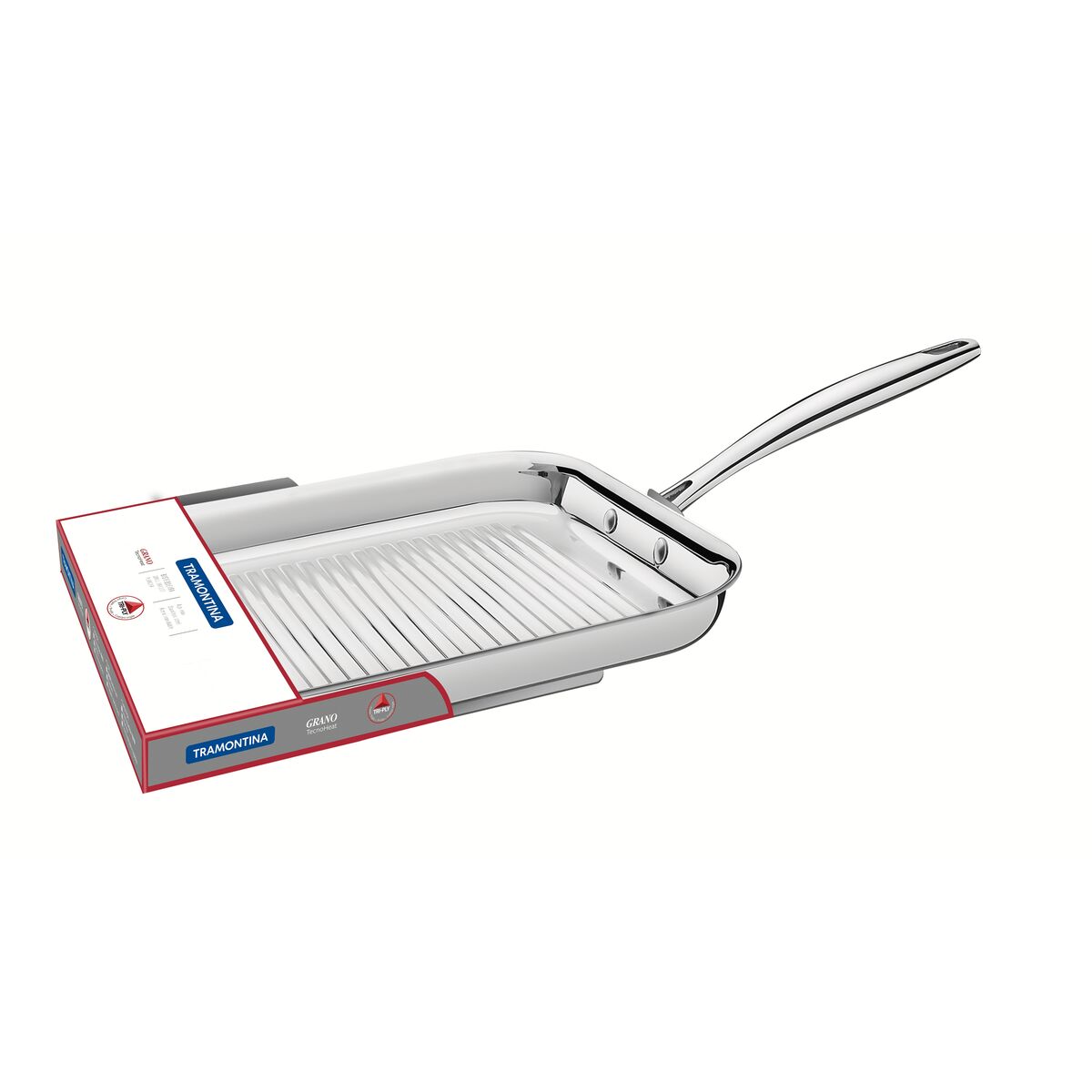 Com a bistequeira Tramontina Grano em aço inox ficou muito mais fácil e prático preparar aquele peixe ou bife grelhado para seu almoço. Ideal para uso diário, ela lhe garante resistência e durabilidade, pois conta com corpo totalmente produzido em aço inox, matéria-prima que não solta nenhum resíduo nos alimentos, mantendo-os saudáveis. A bistequeira conta com corpo triplo, característica que proporciona um cozimento rápido e uniforme dos alimentos. Ela pode ser ser utilizada em fogões à gás, elétricos, vitrocerâmicos e indução, além de poder ir ao forno para gratinar ou finalizar pratos na temperatura máxima de 260°C. Além de todas essas características, ela é muito fácil de limpar e pode ser lavada diariamente na máquina de lavar louças. Uma bistequeira com design diferenciado, moderno e com acabamento em alto brilho que deixa sua cozinha muito mais bonita e cheia de estilo!