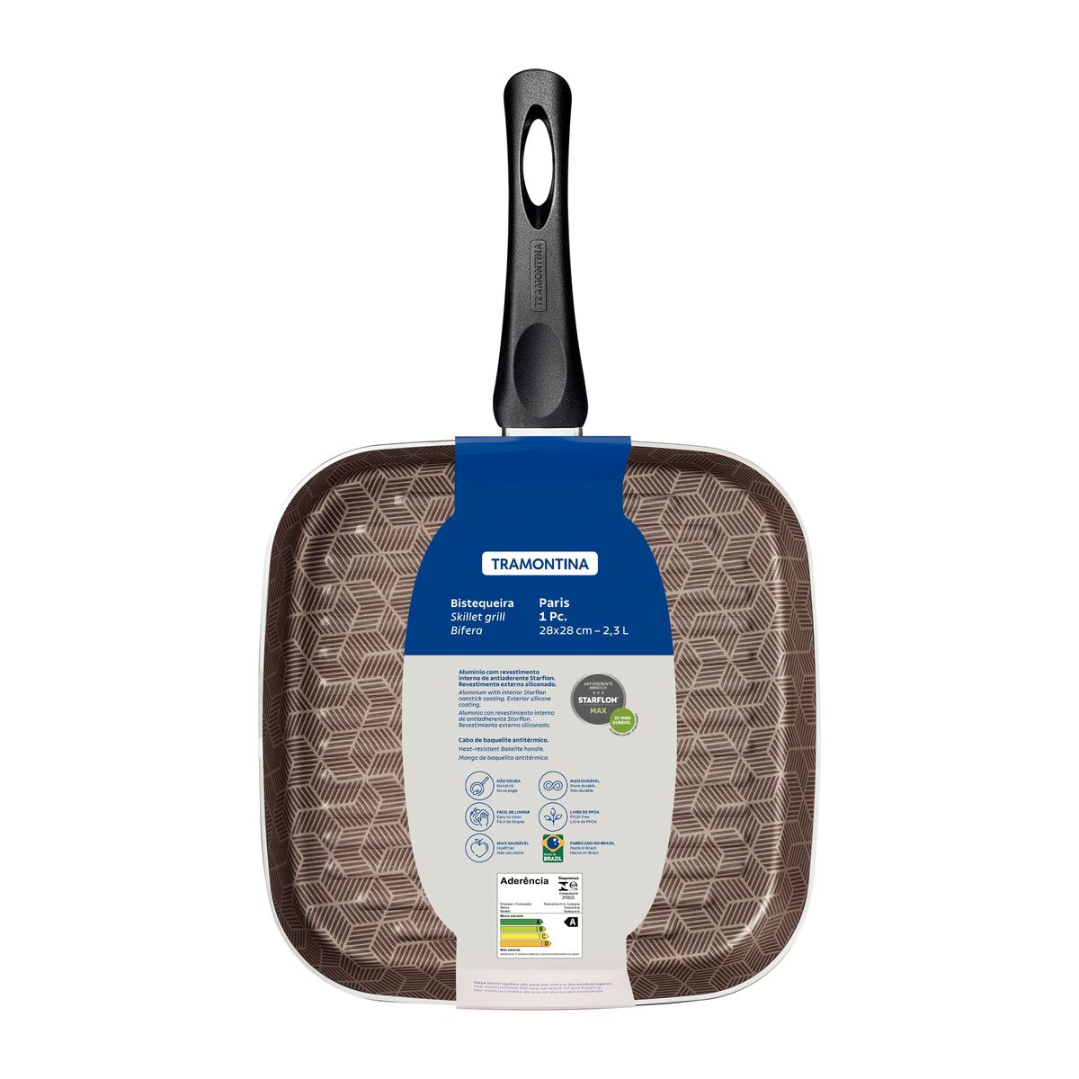 Produto com certificação compulsória certificada pelo SGS 0040, registro 001786/2018, modelo bistequeira e classificação de antiaderência A (ótima), conforme portaria INMETRO 419/2012.