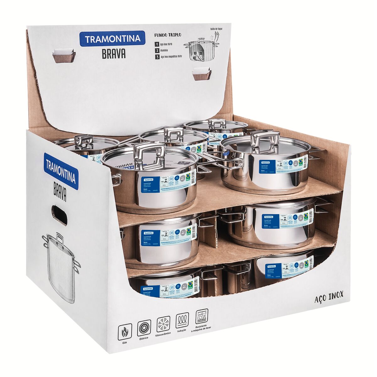 2 62404200 Caçarola Tramontina Brava Funda em Aço Inox Fundo Triplo com Tamp