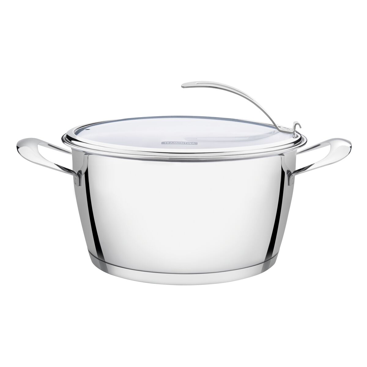 - De aço inox, por isso não solta nenhum resíduo nos alimentos, mantendo-os saudáveis. - Altamente durável, mantém suas características originais, preservando a beleza, a higiene e a durabilidade do material. - O fundo triplo (aço inox + alumínio + aço inox) distribui o calor uniformemente, proporcionando um cozimento mais rápido e uniforme, economizando energia e deixando os alimentos aquecidos por mais tempo. - Com tampa de vidro que pode ser apoiada na borda da caçarola, fazendo com que o vapor condensado na tampa escorra para dentro da caçarola. - Design diferenciado e moderno, com acabamento em alto brilho. - Tampa de vidro com saída de vapor e encaixe perfeito. - Pode ser lavada diariamente na máquina de lavar louças. - Pode ser utilizado nos fogões: gás, elétrico, vitrocerâmico e indução.