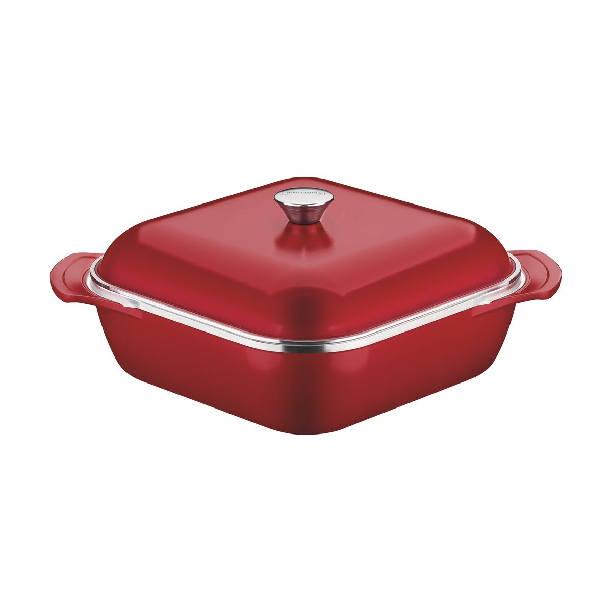 Caçarola Quadrada Tramontina Lyon em Alumínio Forjado com Revestimento Interno Antiaderente Starflon T5 com Tampa Vermelha 28 cm 5,5 L