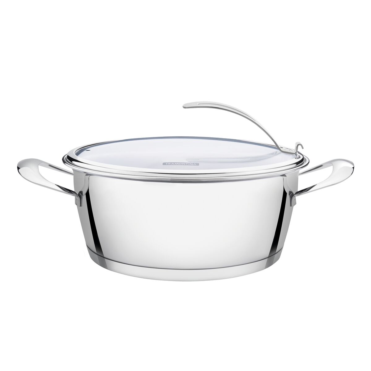 Caçarola Rasa Tramontina Ventura em Aço Inox com Fundo Triplo e Tampa de Vidro 22 cm 3,3 L