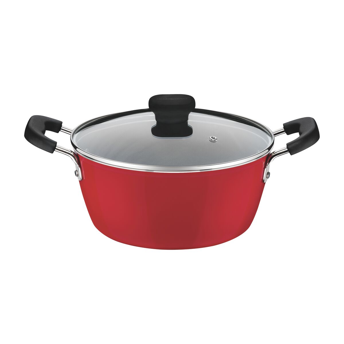 Caçarola Tramontina Piacenza em Alumínio com Revestimento Interno Antiaderente Starflon T3 com Tampa e Alças Baquelite Vermelha 24 cm 4,3 L