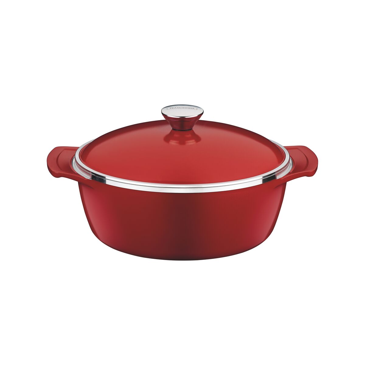 Caçarola Tramontina Lyon em Alumínio Forjado com Revestimento Interno Antiaderente Starflon T5 com Tampa Vermelha 24 cm 3,7 L