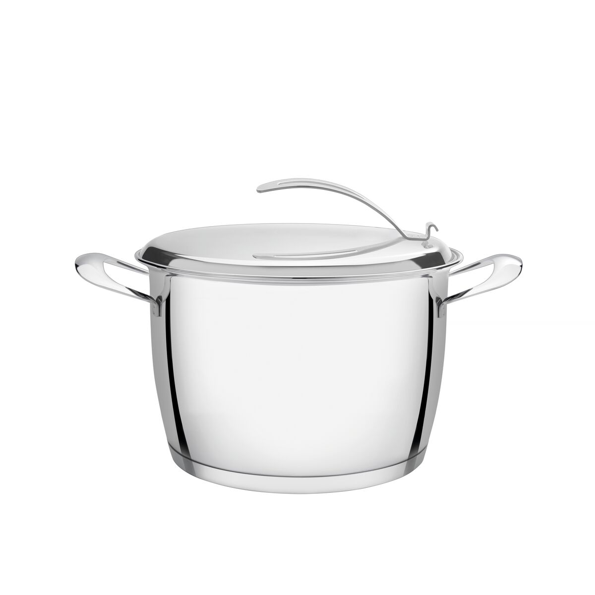- Totalmente feito de aço inox, por isso não solta nenhum resíduo nos alimentos, mantendo-os saudáveis. - Altamente durável, mantém as características originais, preservando a beleza, a higiene e a durabilidade do material. - O fundo triplo (aço inox + alumínio + aço inox) distribui o calor uniformemente, proporcionando um cozimento mais rápido e uniforme, economizando energia e deixando os alimentos aquecidos por mais tempo. - Pode ir ao forno para gratinar ou finalizar pratos, na temperatura máxima de 260°C. - A tampa pode ser apoiada na borda do caldeirão, fazendo com que o vapor condensado na tampa escorra para dentro do caldeirão. - Design diferenciado e moderno, com acabamento em alto brilho. - Possui tampa com saída de vapor e encaixe perfeito. - Pode ser lavado diariamente na máquina de lavar louças. - Pode ser utilizado nos fogões: gás, elétrico, vitrocerâmico e indução.