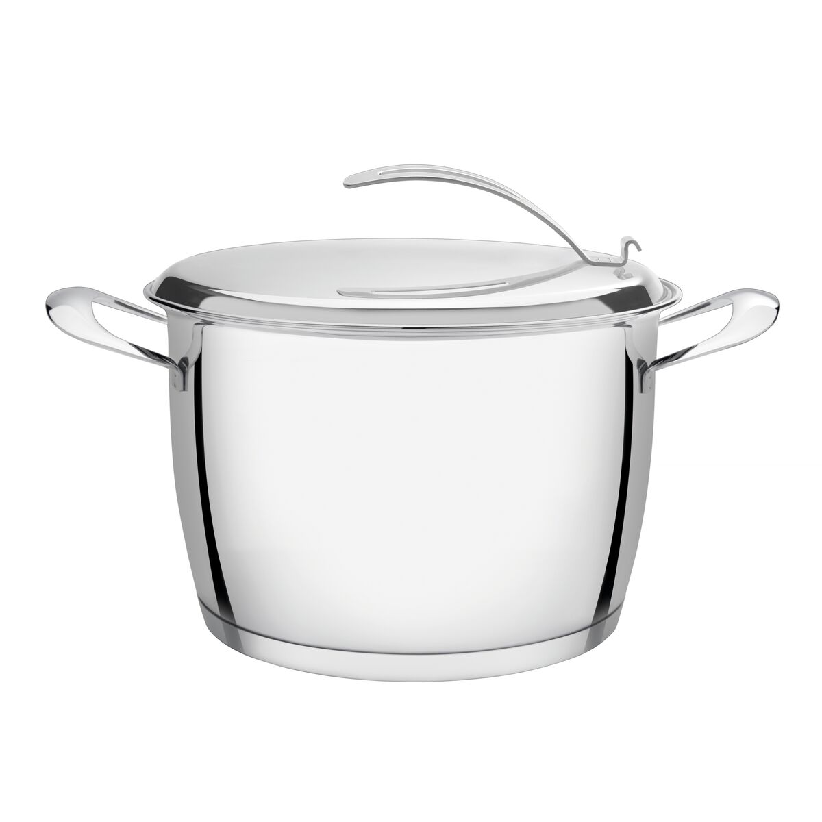 - Totalmente feito de aço inox, por isso não solta nenhum resíduo nos alimentos, mantendo-os saudáveis. - Altamente durável, mantém as características originais, preservando a beleza, a higiene e a durabilidade do material. - O fundo triplo (aço inox + alumínio + aço inox) distribui o calor uniformemente, proporcionando um cozimento mais rápido e uniforme, economizando energia e deixando os alimentos aquecidos por mais tempo. - Pode ir ao forno para gratinar ou finalizar pratos, na temperatura máxima de 260°C. - A tampa pode ser apoiada na borda do caldeirão, fazendo com que o vapor condensado na tampa escorra para dentro do caldeirão. - Design diferenciado e moderno, com acabamento em alto brilho. - Possui tampa com saída de vapor e encaixe perfeito. - Pode ser lavado diariamente na máquina de lavar louças. - Pode ser utilizado nos fogões: gás, elétrico, vitrocerâmico e indução.