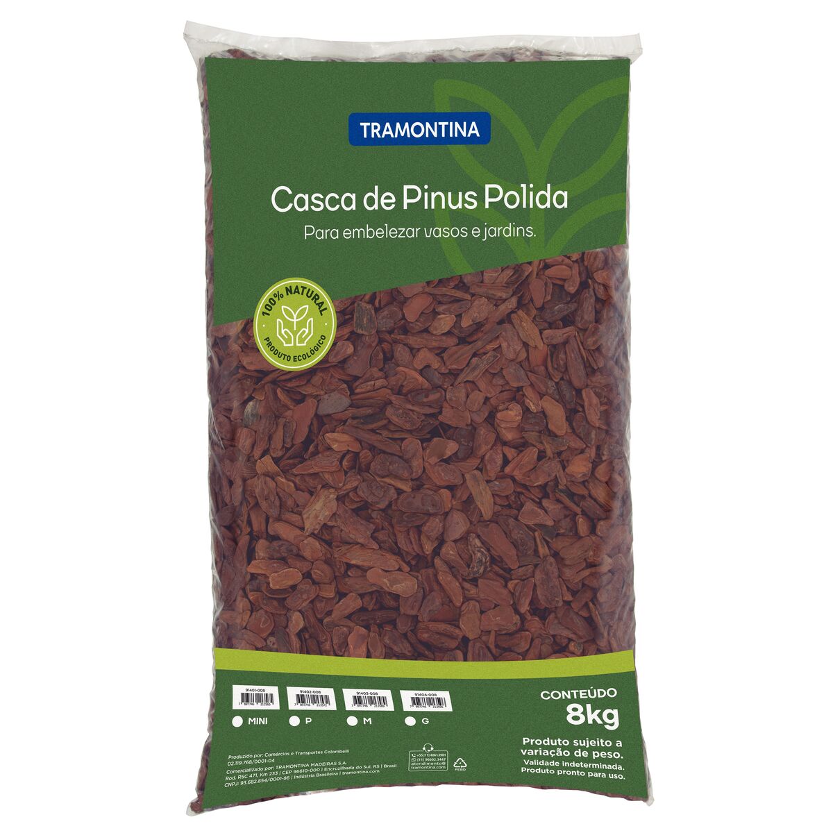 A casca de pinus polida Tramontina tamanho P vai deixar seu jardim muito mais especial e com a garantia de cuidado para suas plantas. Produzida da casca de pinus e 100% natural, ela promove uma camada protetora no local onde for inserida e reduz o aparecimento de ervas daninhas. A casca de pinus ainda evita a erosão e compactação do solo, promovendo maior longevidade as suas plantas, de forma ecologicamente correta e biodegradável!