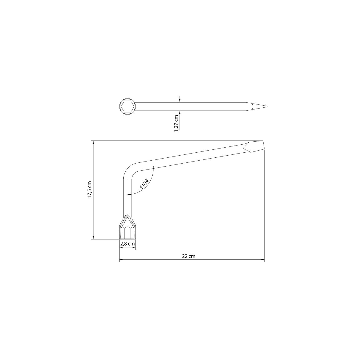 Precisando trocar um pneu? Esta é a ferramenta certa! Com formato L, possui soquete de um lado, para facilitar a retirada ou colocação das porcas da roda e espátula do outro lado, para manuseio dos pneus e calotas. Este produto não pode faltar na sua caixa de ferramentas.