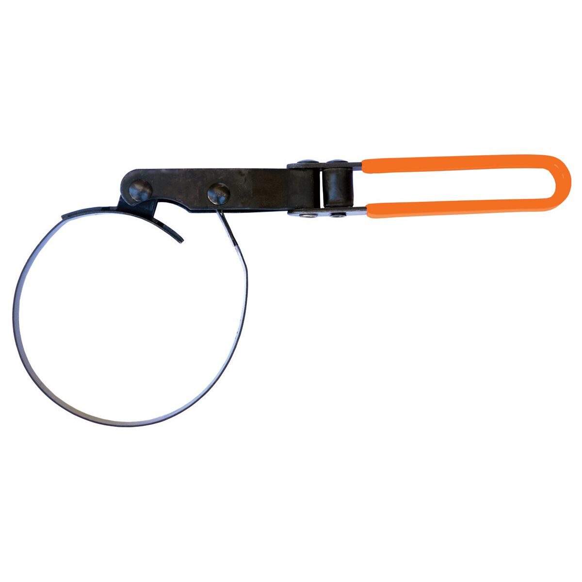 Corpo em aço carbono. Cinta em aço carbono laminado. Cabeça articulada. Corpo fosfatizado. Cabo com revestimento especial. Utilizada para remover filtro de óleo de caminhões e carros. As ferramentas são produzidas e testadas conforme normas específicas.