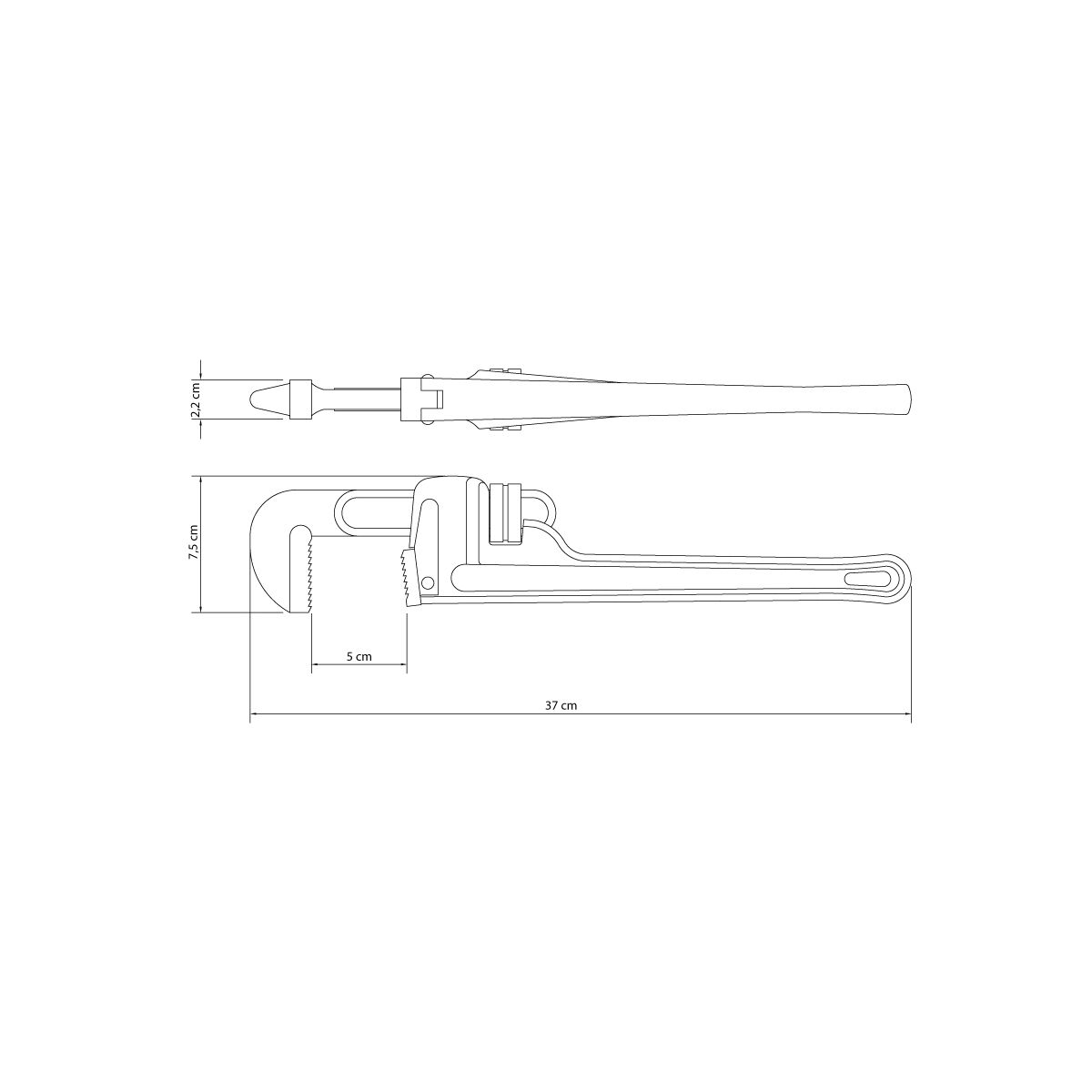 Mandíbulas forjadas em aço alto carbono e temperadas. Corpo e porca reguladora de abertura em ferro fundido. Abertura dos mordentes regulável. Pintura eletrostática. O teste de dureza é realizado em vários pontos para assegurar a resistência ao desgaste da chave durante o uso ininterrupto. Específica para instalações e manutenções hidráulicas. Mais indicada para tubos não endurecidos. As ferramentas são produzidas e testadas conforme normas específicas.