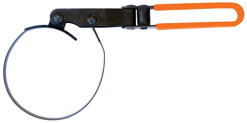 Corpo em aço carbono. Cinta em aço carbono laminado. Cabeça articulada. Corpo fosfatizado. Cabo com revestimento especial. Utilizada para remover filtro de óleo de caminhões e carros. As ferramentas são produzidas e testadas conforme normas específicas.