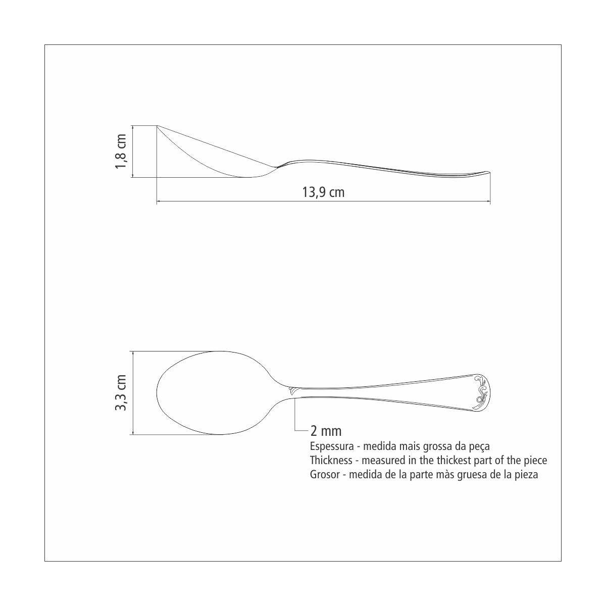 Colher com bojo em formato simétrico e bordas cuidadosamente arredondadas, proporcionando maior conforto no uso.