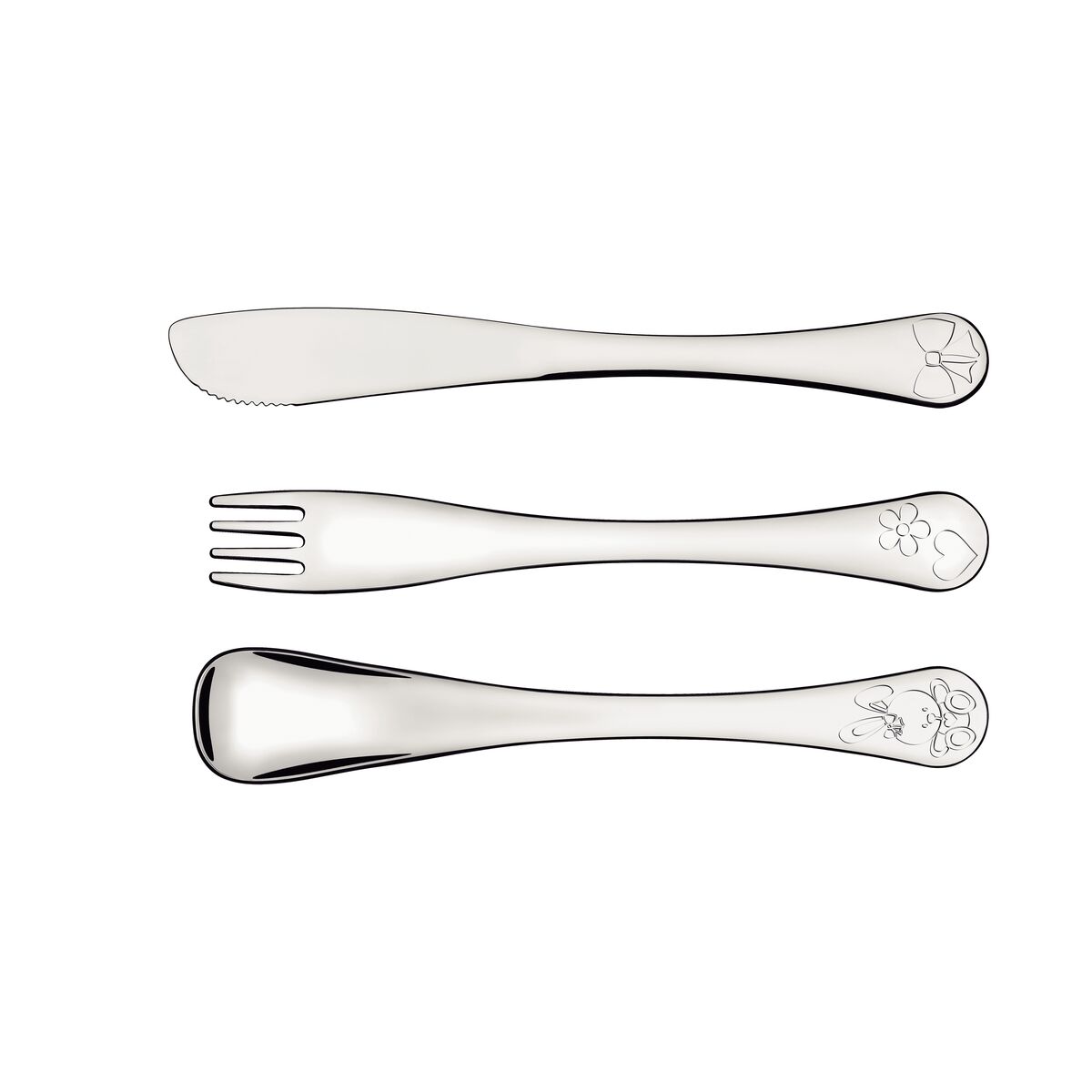 Jogo de Talheres Infantil Tramontina Le Petit em Aço Inox Meninas Acabamento Brilho com Desenho em Alto Relevo 3 Peças