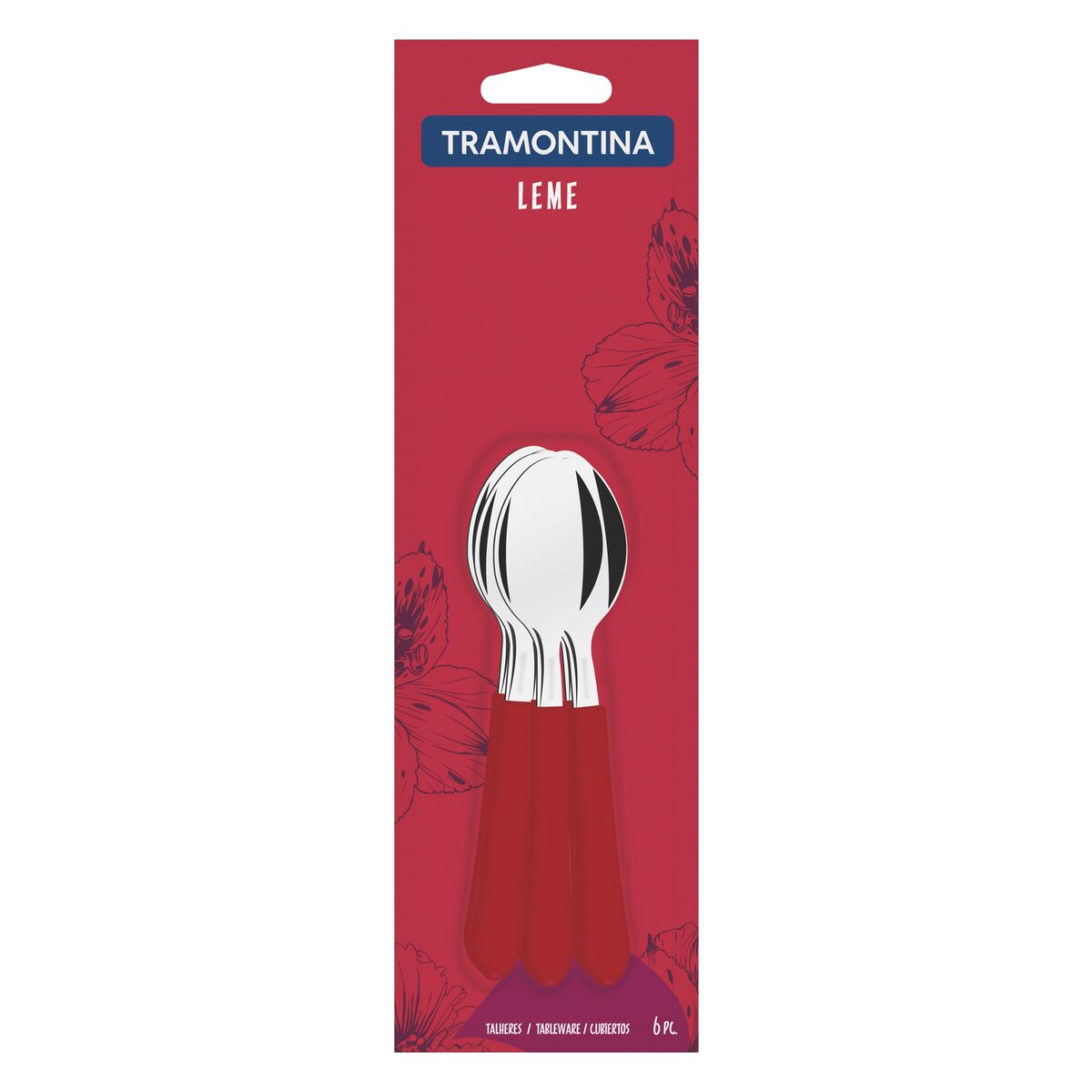 Leve à mesa a alegria das cores. Os talheres da linha Leme tem cabos coloridos e resistentes de polipropileno. Com lâminas em aço inox, as colheres têm alta resistência e durabilidade. Todas as peças podem ir à máquina de lavar.