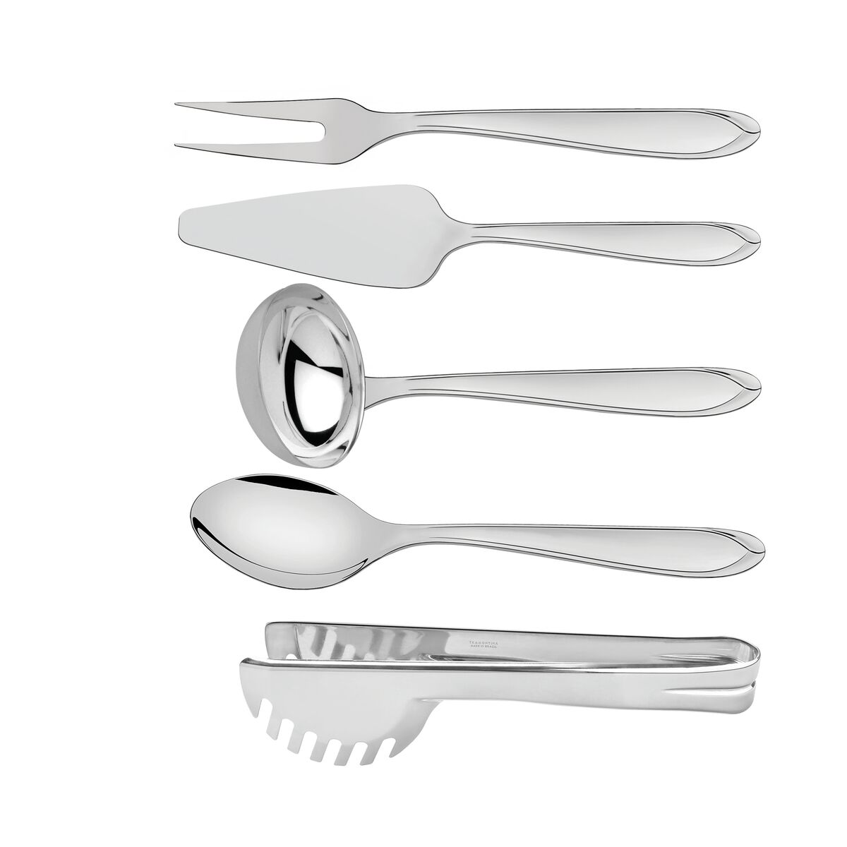 1 63906100 Colher para arroz + 1 63906190 Concha para feijão + 1 63906470 Garfo trinchante + 1 63800605 Pegador para massa de aço inox + 1 63906150 Pá para bolo