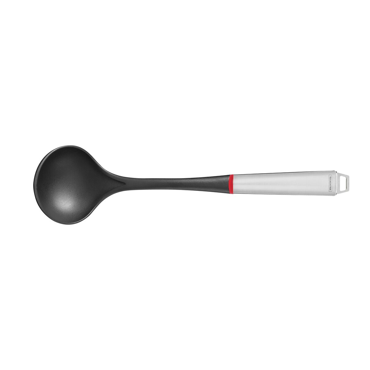 Utensílio de nylon com cabo de aço inox e com detalhe em vermelho, resultando num toque diferenciado e moderno em sua cozinha. A linha Moderne, em que reúne os utensílios necessários para preparar e servir diferentes receitas. São itens que trazem frescor à cozinha, com design moderno e uma pitada de cor. Além disso, os utensílios possuem furo no cabo, o que permite incluí-los na decoração da cozinha. Resistem a altas temperaturas, podendo chegar até 180°C. Podem ser lavados na máquina de lavar louças.
