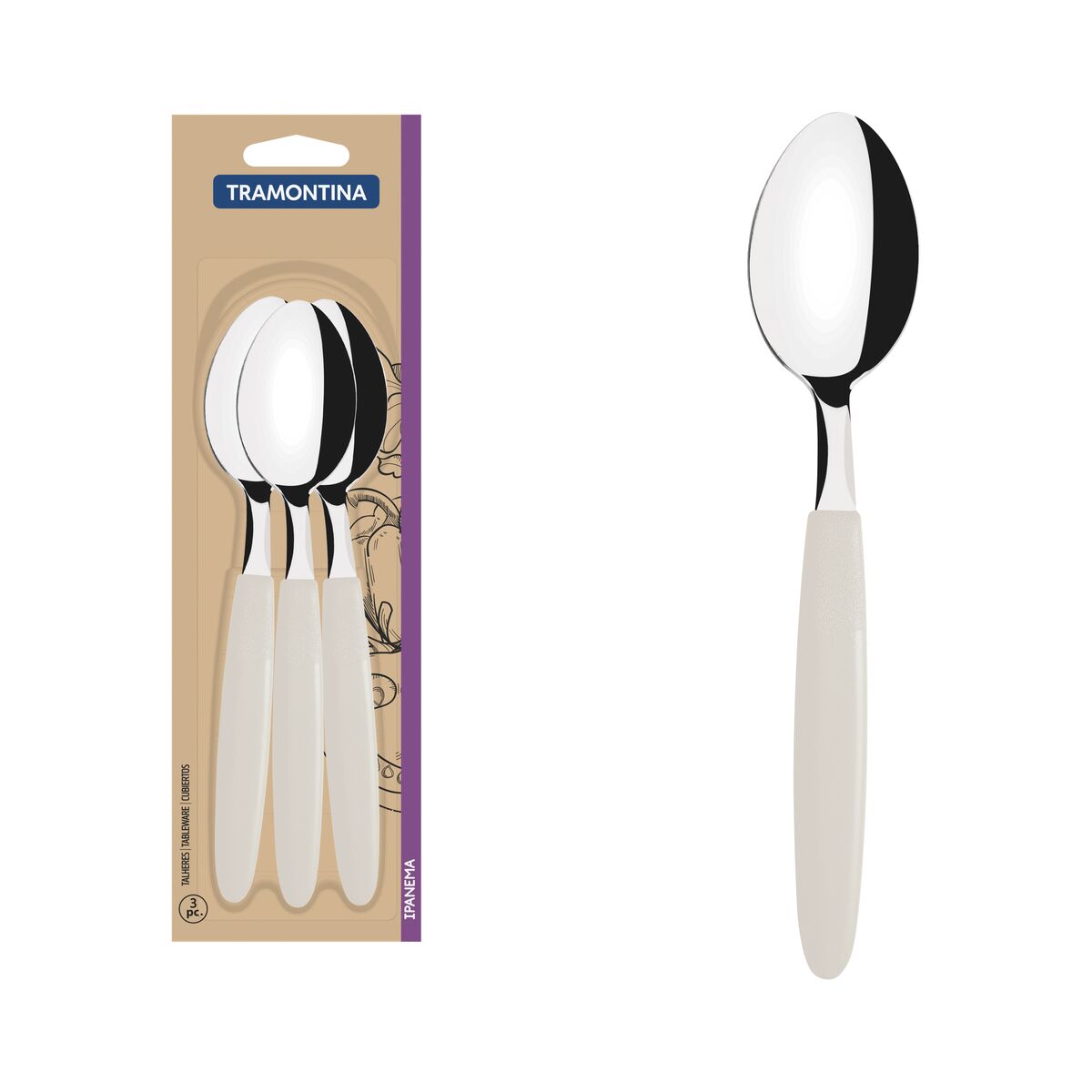 Conjunto de Colheres de Mesa Tramontina Ipanema com Lâminas de Aço Inox e Cabos de Polipropileno Cinza 3 Peças
