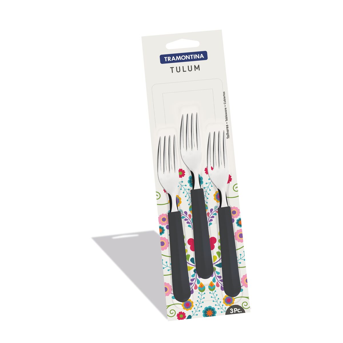 Os talheres da linha Tulum são próprios para as refeições diárias. Despojados, têm nas diferentes opções de cores dos cabos de polipropileno o toque de alegria que vai à mesa. Os garfos são de aço inox em espessuras que garantem alta resistência e durabilidade. O formato das lâminas impede deformações. Podem ser levados à máquina de lavar.