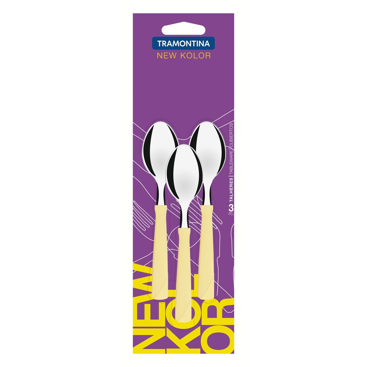 Leve à mesa a alegria das cores. Os talheres da linha New Kolor tem cabos coloridos e resistentes de polipropileno. Com lâminas em aço inox, as colheres têm alta resistência e durabilidade. Todas as peças podem ir à máquina de lavar.
