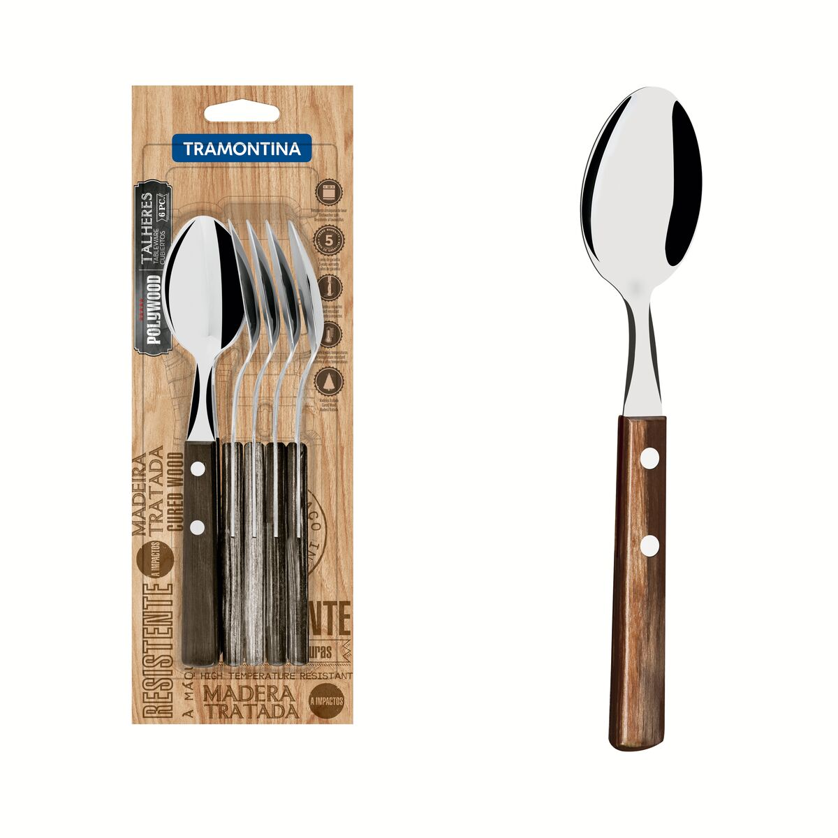 As refeições informais não dispensam a qualidade dos talheres, utensílios e facas. Por isso, a Linha Polywood têm lâminas de aço inox em formato e espessura que garantem a resistência e evitam deformações. O tratamento térmico dá mais durabilidade ao fio e o cabo de madeira tratada polywood, fixado com rebites de alumínio, é confortável à pega. Com cinco anos de garantia, permanecem bonitos mesmo com uso intenso e submetidos a impactos e altas temperaturas. Podem ir à máquina de lavar louças.