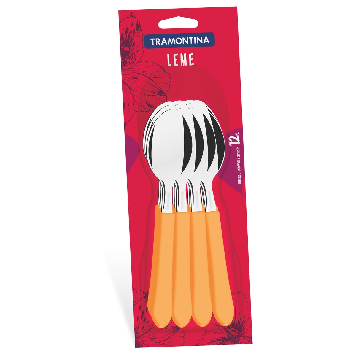 Leve à mesa a alegria das cores. Os talheres da linha Leme tem cabos coloridos e resistentes de polipropileno. Com lâminas em aço inox, as colheres têm alta resistência e durabilidade. Todas as peças podem ir à máquina de lavar.