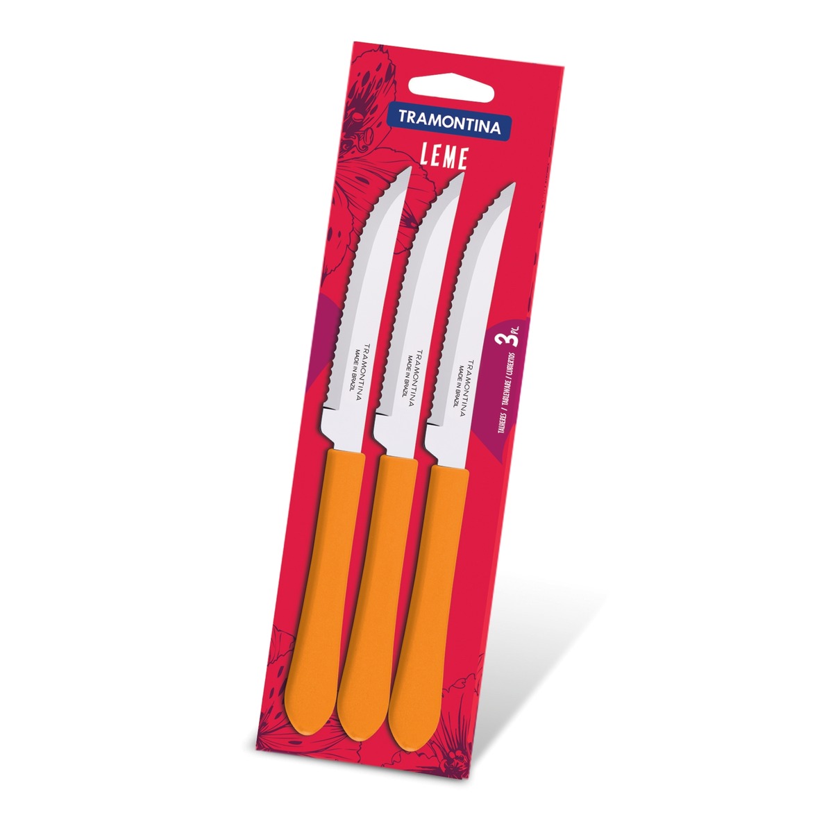 Leve à mesa a alegria das cores. Os talheres da linha Leme tem cabos coloridos e resistentes de polipropileno. Com lâminas em aço inox, as facas têm alta resistência e durabilidade. As lâminas das facas recebem tratamento térmico que lhes garante vida longa ao fio. Todas as peças podem ir à máquina de lavar.