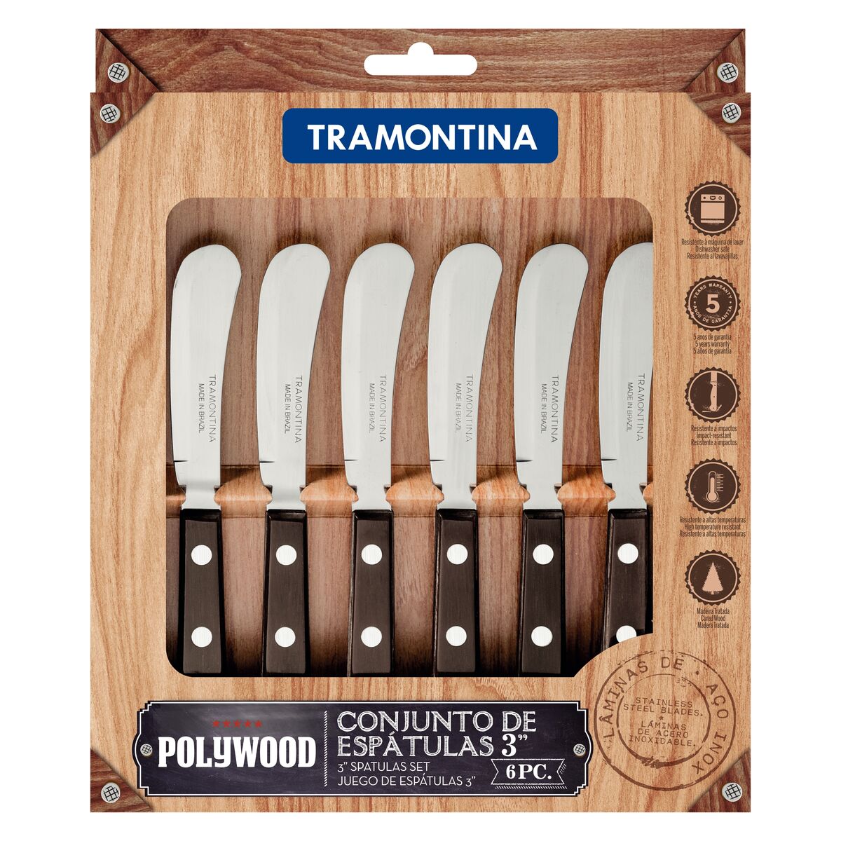 Conjunto de Espátulas para Manteiga Tramontina Polywood com Lâminas em Aço Inox e Cabos de Madeira Castanho 6 Peças