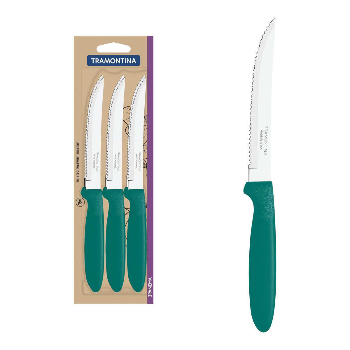 O Conjunto de Facas para Churrasco Tramontina Ipanema com Lâminas em Aço Inox e Cabos de Polipropileno Verde Esmeralda 6 Peças irá deixar suas refeições ainda mais saborosas! As peças contam com lâminas de aço inox que proporcionam resistência e durabilidade. Seus cabos são em polipropileno na cor verde esmeralda e garantem um manuseio seguro e confortável, além de deixar a composição da sua mesa muito mais estilosa. Elas ainda são muito fáceis de limpar e podem ir à máquina de lavar louças. A escolha perfeita para deixar seu dia a dia muito mais colorido!