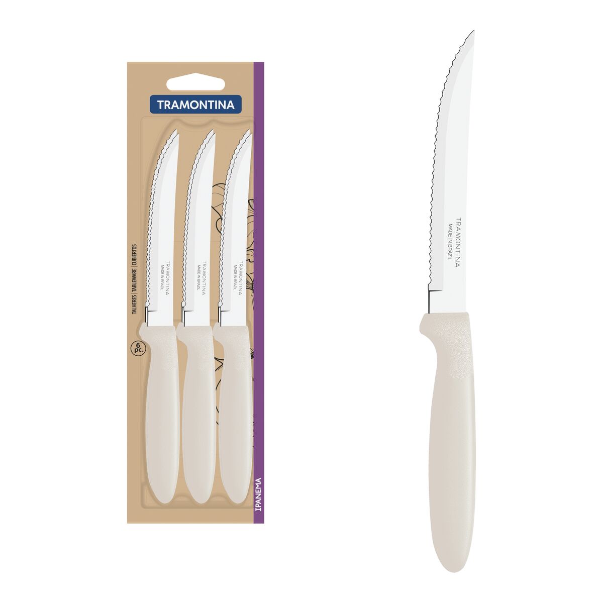 Garanta uma mesa elegante e funcional com o Conjunto de Facas para Churrasco Tramontina Ipanema com Lâminas em Aço Inox e Cabos de Polipropileno Cinza 6 Peças. As facas do conjunto têm lâminas em aço inox que garantem mais resistência e durabilidade, além de proporcionar um excelente corte dos alimentos. Seus cabos são em polipropileno e proporcionam um manuseio mais seguro e confortável, além de levar mais beleza à sua mesa, devido a cor warm gray. Elas ainda são muito fáceis de limpar e podem ir à máquina de lavar louças. O conjunto perfeito para levar à mesa e transformar suas refeições!