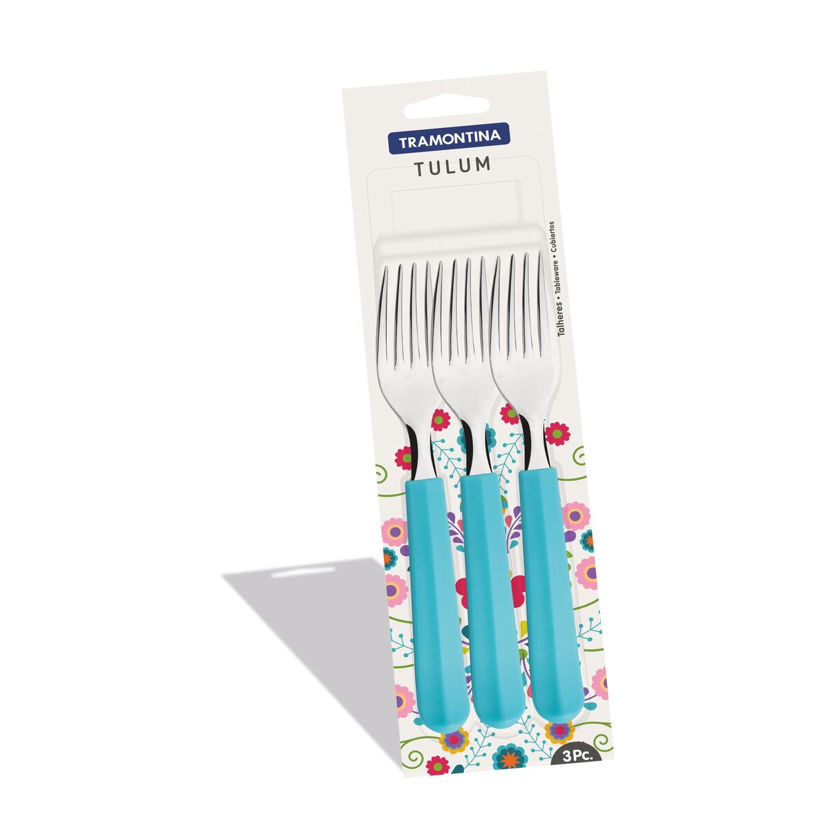 Os talheres da linha Tulum são próprios para as refeições diárias. Despojados, têm nas diferentes opções de cores dos cabos de polipropileno o toque de alegria que vai à mesa. Os garfos são de aço inox em espessuras que garantem alta resistência e durabilidade. O formato das lâminas impede deformações. Podem ser levados à máquina de lavar.