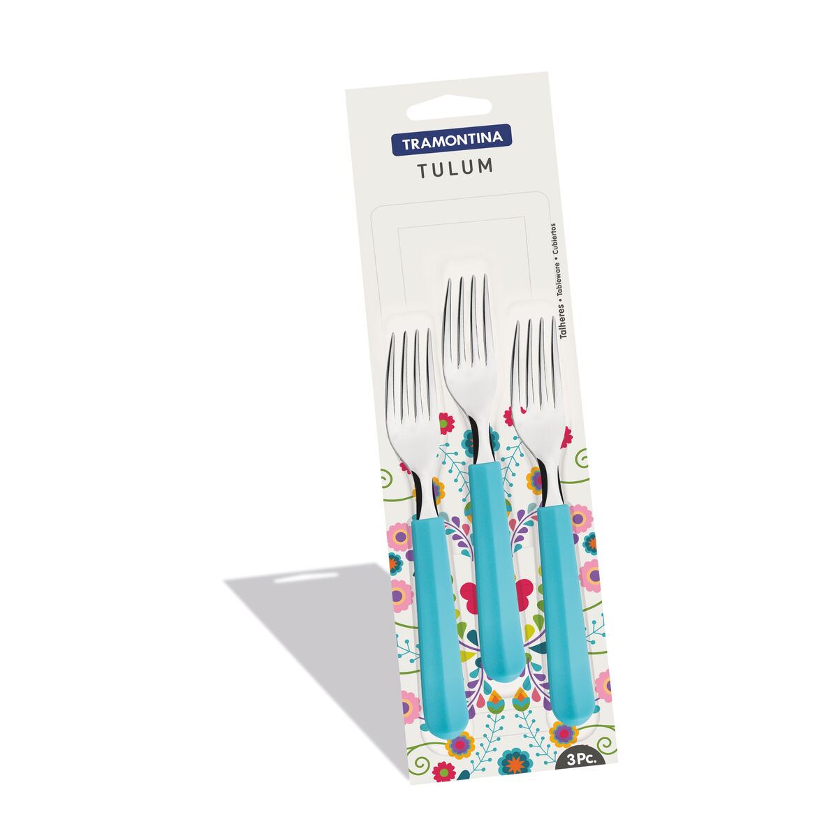 Os talheres da linha Tulum são próprios para as refeições diárias. Despojados, têm nas diferentes opções de cores dos cabos de polipropileno o toque de alegria que vai à mesa. Os garfos são de aço inox em espessuras que garantem alta resistência e durabilidade. O formato das lâminas impede deformações. Podem ser levados à máquina de lavar.