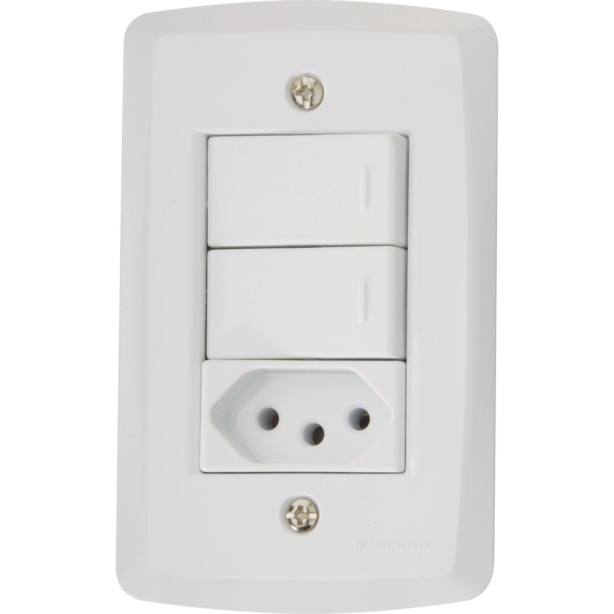 Conjunto 4x2 com 2 Interruptores Simples 10 A 250 V e 1 Tomada 2P+T 10 A 250 V Tramontina Lux2 Branco