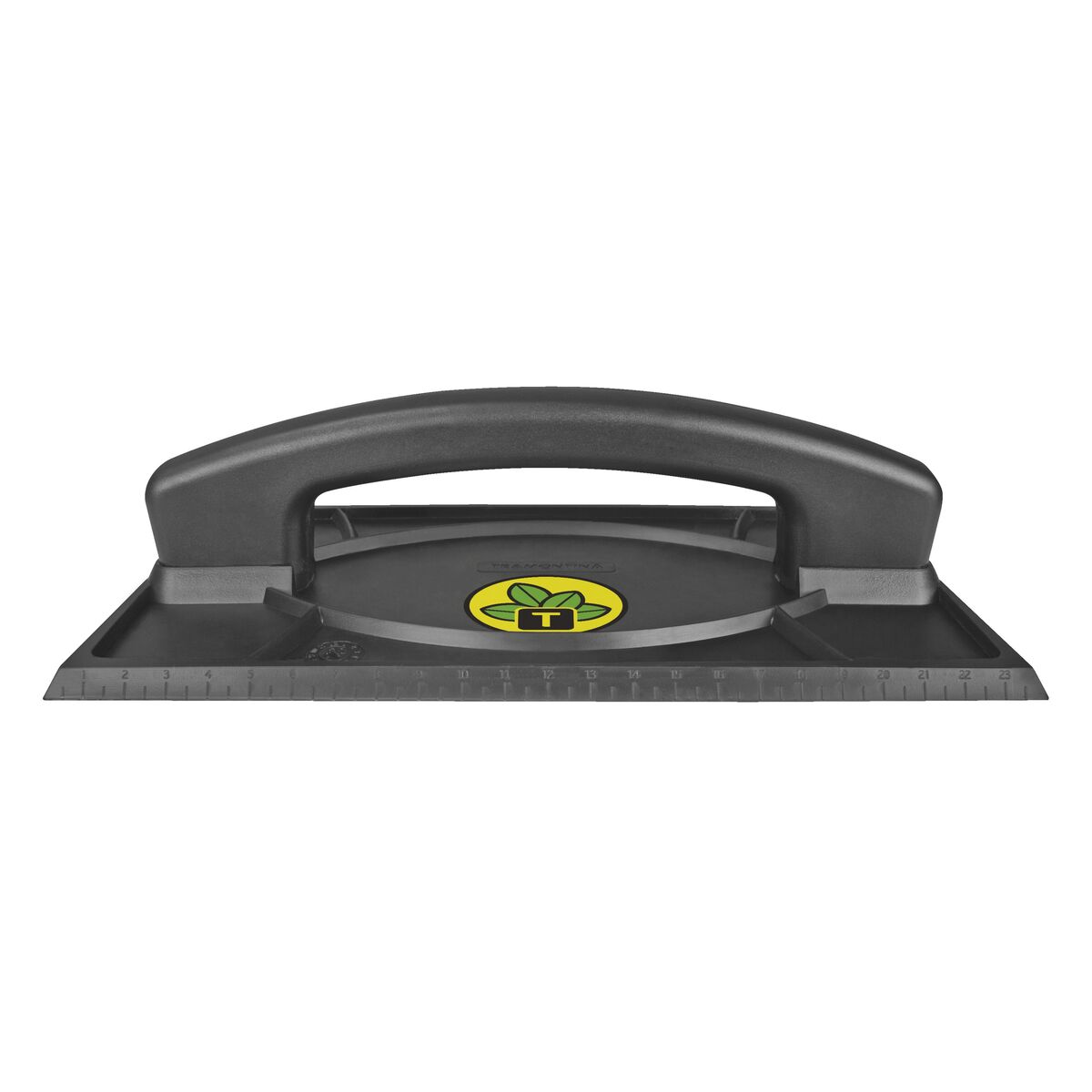 - A desempenadeira é injetada com poliestireno especial de alta resistência, proporcionando durabilidade superior e acabamento diferenciado. - Lâmina com tamanho 240 x 140 mm. - Possui régua com graduação em centímetros. - A base corrugada facilita o nivelamento do produto utilizado e remove detritos irregulares da superfície, como pedrinhas e outras pequenas partículas. - Produto leve, que gera menos esforço físico do usuário e proporciona maior produtividade.