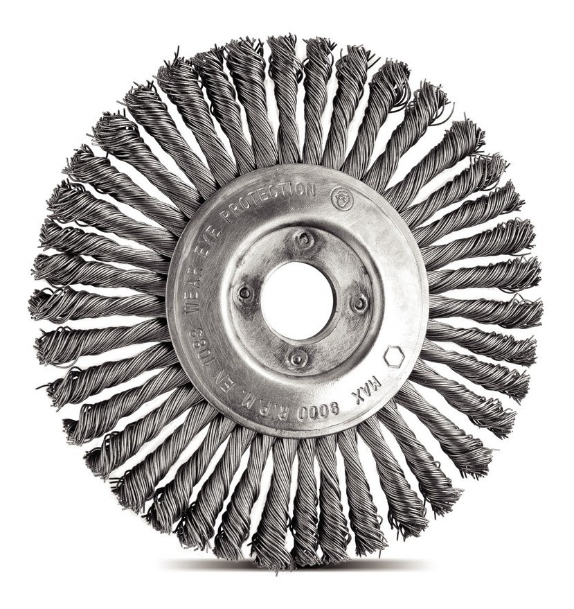 Filamentos em aço especial temperados. Diâmetro do filamento de 0,5 mm. Furo de encaixe de 22,23 mm. 39 tranças. EN 1083. Utilizadas nas aplicações de remoção de carepas de cordão de solda em montagens e manutenção de tubos. Utilizadas em esmerilhadeiras 4.1/2". As ferramentas são submetidas a testes de aplicação prática para garantir sua resistência mecânica em uso intenso. As ferramentas são produzidas e testadas conforme normas específicas.
