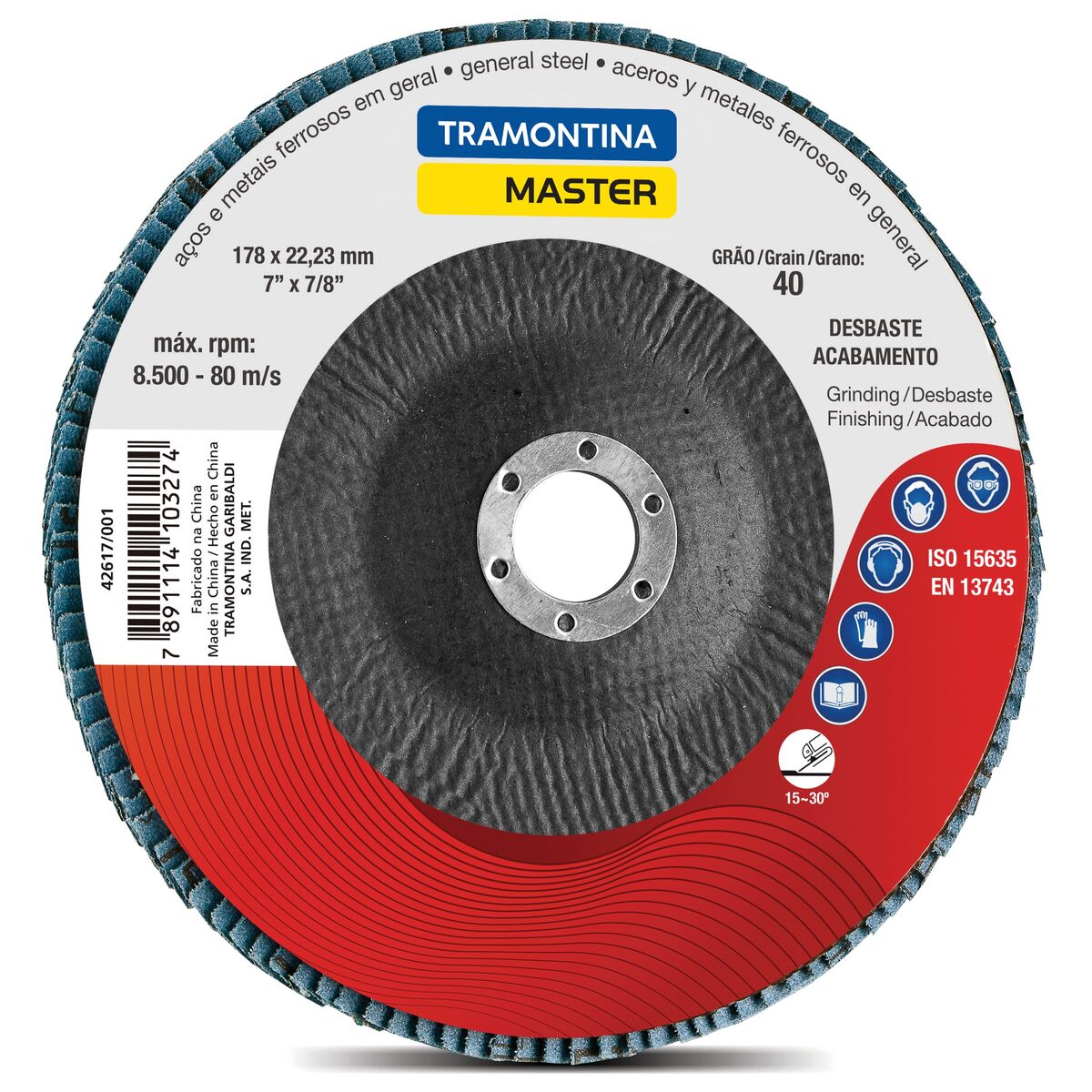 Disco produzido com lixas de grãos de zircônia. Corpo cônico reforçado com malhas de fibra de vidro. Velocidade máxima de trabalho 80m/s - 8500 rpm. Tamanho do grão da lixa: 40. Modelo tipo 29. EM 13743. ISO 15635. Utilizado juntamente com esmerilhadeiras nos trabalhos de desbaste e acabamento em aços e metais ferrosos em geral. Proporciona um excelente rendimento nas operações de acabamento. Todas as ferramentas são produzidas e testadas conforme normasespecíficas.
