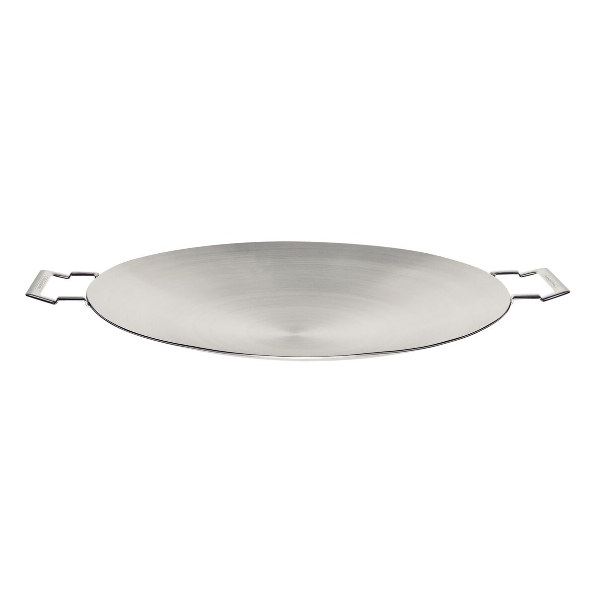 O disco para grelhar da Tramontina é composto de uma superfície ampla para cozinhar todos os tipos de carnes ou alimentos. O corpo triplo em aço inox + alumínio + aço inox distribui o calor de maneira uniforme, proporcionando um cozimento mais rápido, economizando energia e deixando os alimentos aquecidos por mais tempo. Esse disco possui uma leve inclinação, sendo o centro mais fundo que a borda, podendo ser utilizado diretamente sobre a chama do fogão a lenha, a gás, elétrico ou de indução, sendo muito prático em churrasqueiras e fornos. Ideal para preparar carnes, peixes, risotos, entre outros pratos.