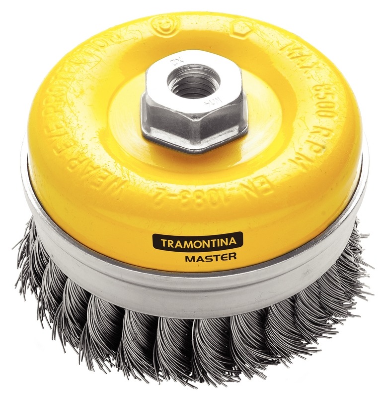 A linha de escovas da Tramontina Master é utilizada para fazer a remoção de rebarbas, ferrugens, pinturas, carepas e respingos de solda, proporcionando acabamento em aços, madeiras, tubos e borrachas.