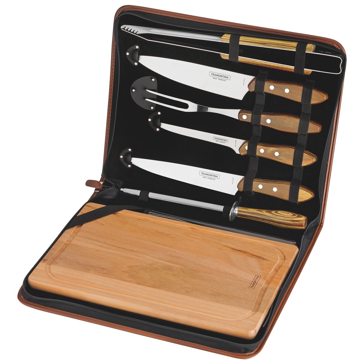 Respeito também se conquista na ponta da faca. Mas, calma. Estamos falando da linha de facas e garfos trinchantes especiais para churrasco. A Tramontina tem um modelo para cada etapa do preparo: da limpeza dos cortes até a hora de servir a carne já churrasqueada. Todas com o corte perfeito que o seu churrasco merece.