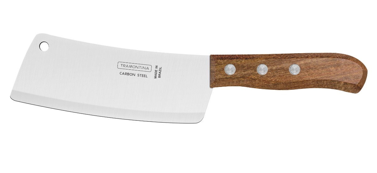 Lâmina em aço carbono. Cabo de madeira. Rebites de alumínio.